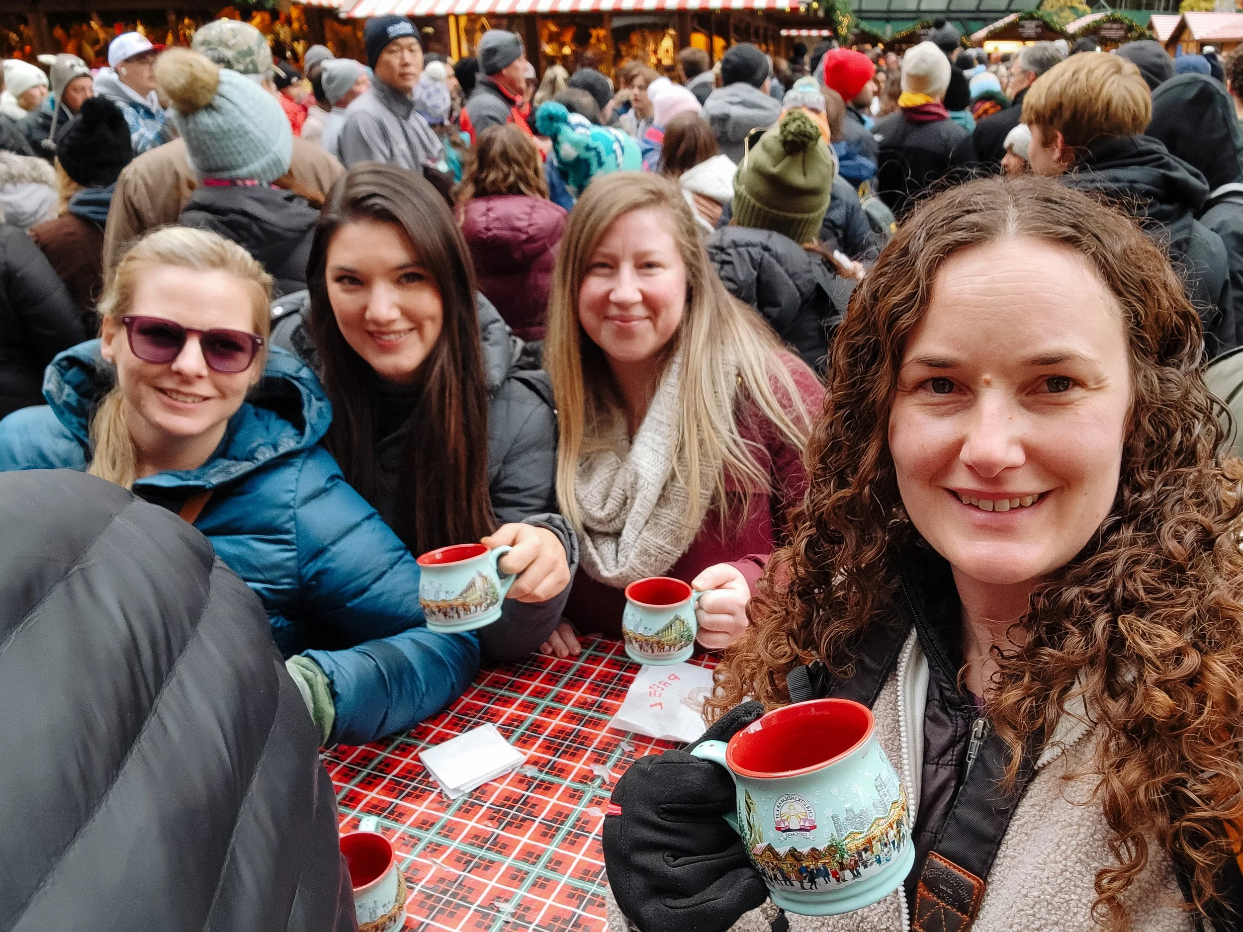 It’s a family tradition for us to get the Glühwein, which is a warm spiced wine and the gourmet stuffed pretzels. It was all very good! The Glühwein comes in a keepsake mug too, and every year they make different mugs with a different design.