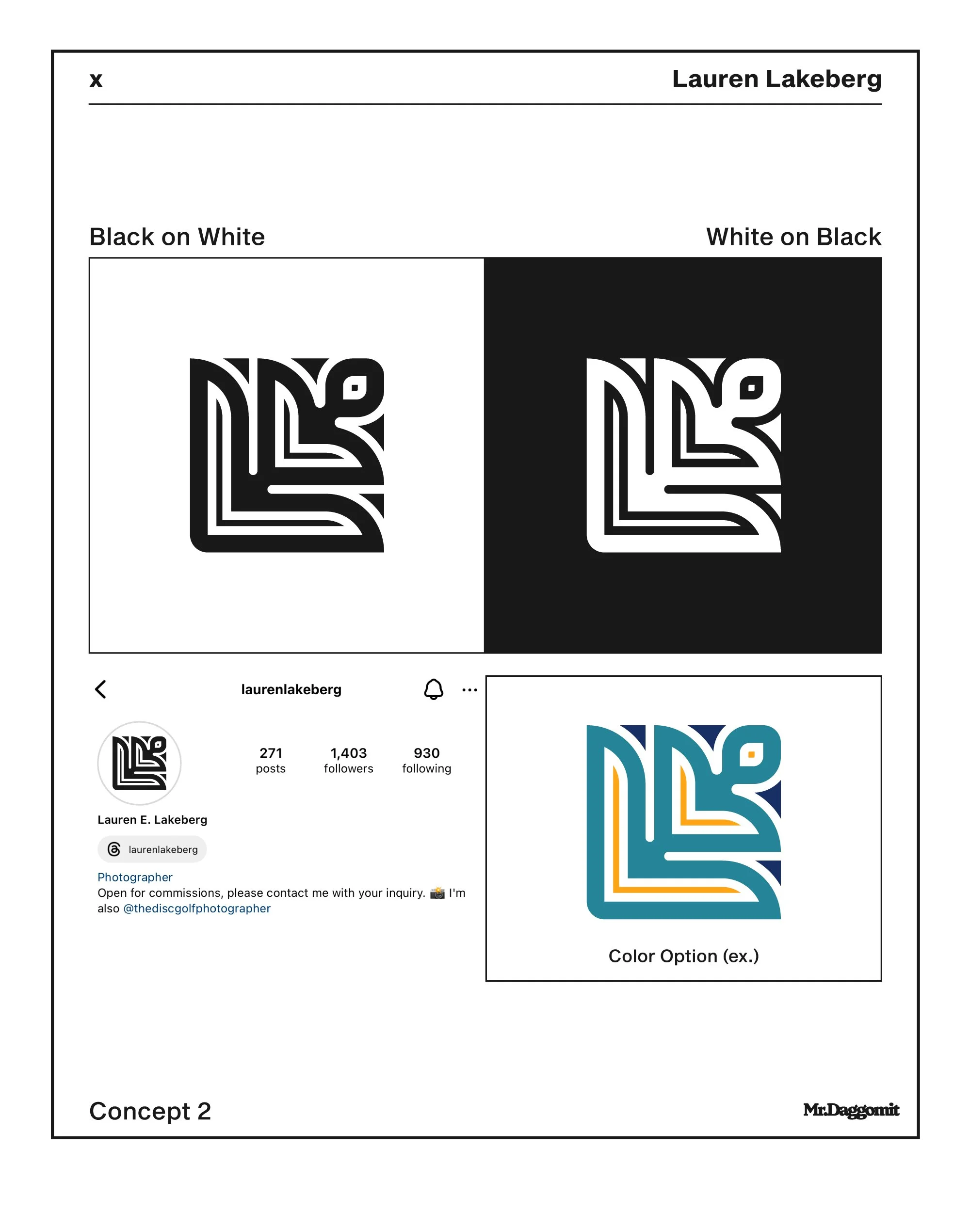 I am so excited to share that I have a new logo design that was created by Mr. Daggomit. “Dagg” also made by logo for my brand The Disc Golf Photographer. Working with him is always so fun because he puts together different concepts, which it makes it fun to digest. I love his work so much because it has this minimalist analog vibe.