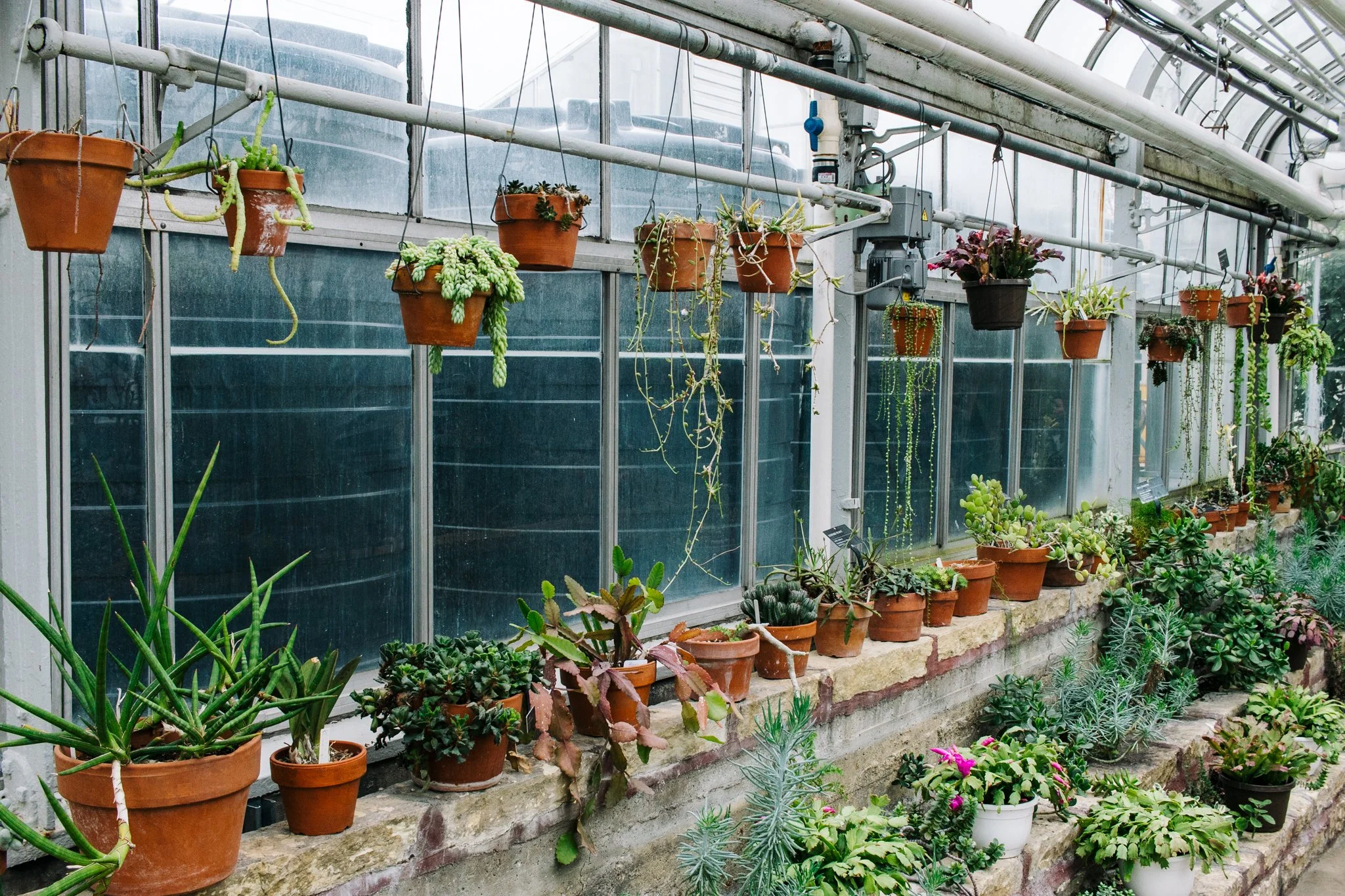The Oak Park Conservatory has three showcase rooms: The Mediterranean Room, Tropical Room and the Desert. The rooms are pretty quaint and I was blown away by the level of detail put into every space. I ended up spending the most amount of time in the Desert room just because they had so many small pots of different species — including living stones! And there was just so much texture mixed with contrast to photograph here.