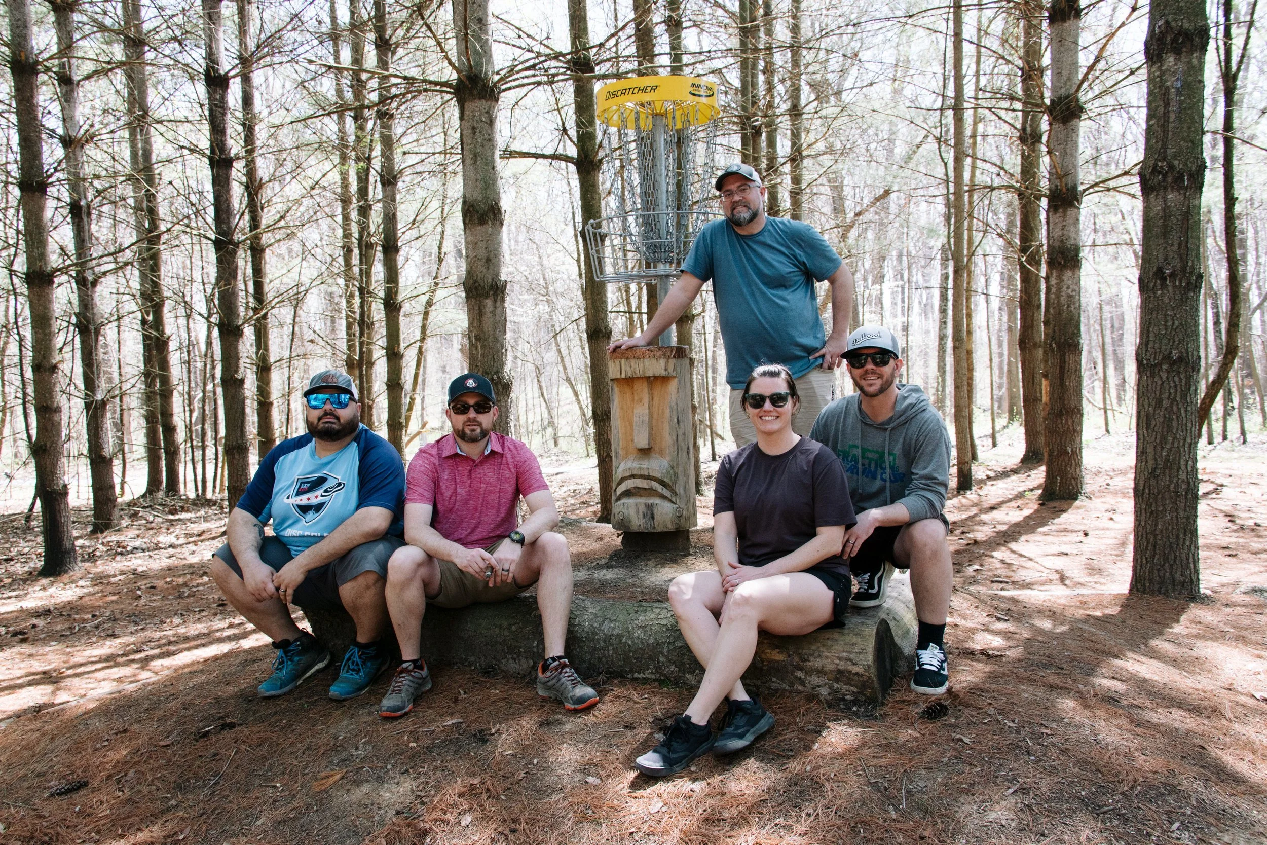 The Unstable Discourse Podcast crew from left to right: Alex Seminary (Disc Golf Chicago), Ryan Fancher (Unstable Disc Golf Gear), Sheila and Sean Callahan (Dellwood Disc Golf), and Jason Callahan (Standing - Baig of Tricks).