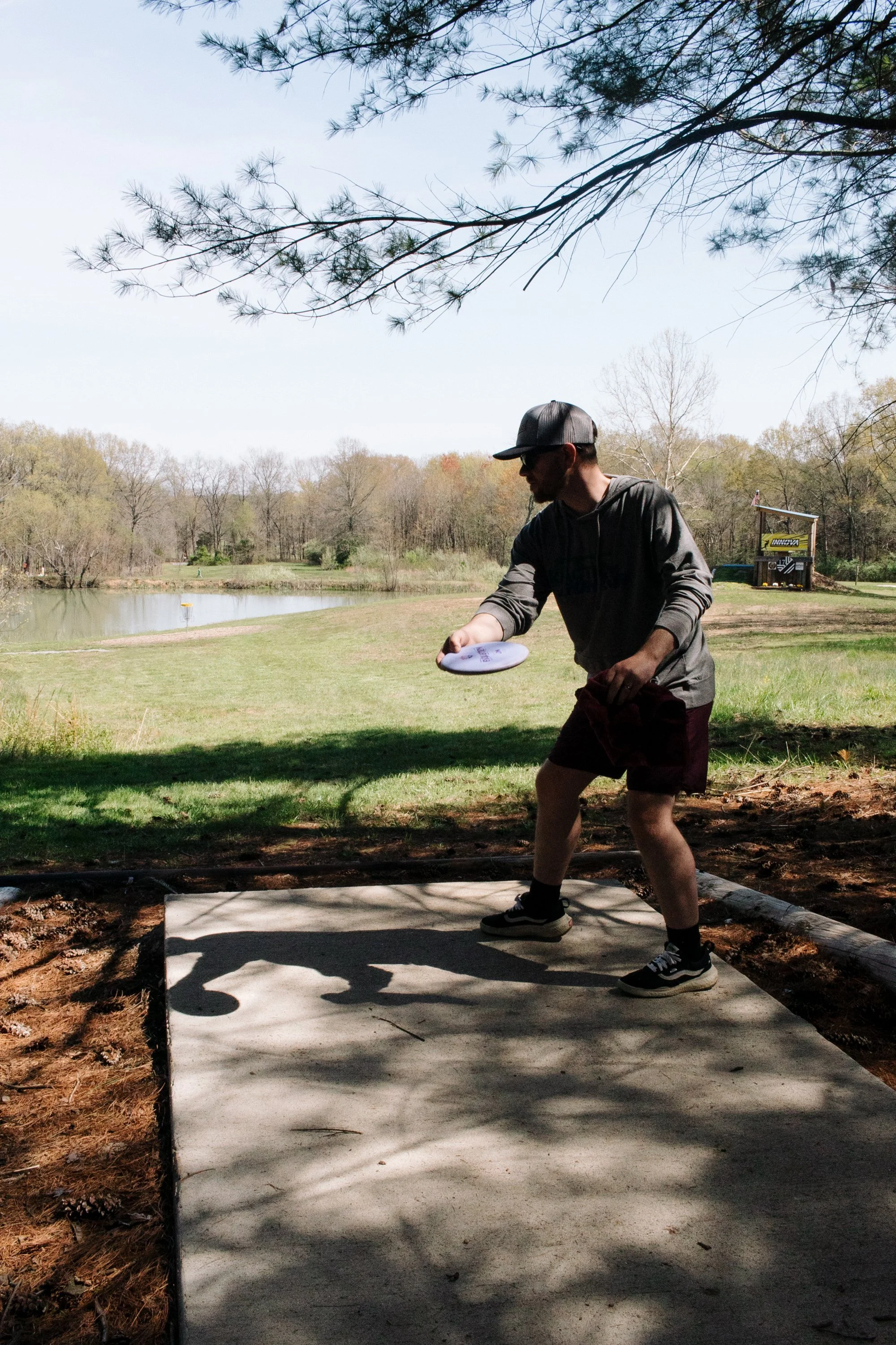 Before our group tee-d off we ran into Matt Kruger, co-founder of UDisc. I remember meeting Matt at the 2016 Maple Hill Open when the Disc Golf Pro Tour started (you may know the Maple Hill Open today as the MVP Open).
