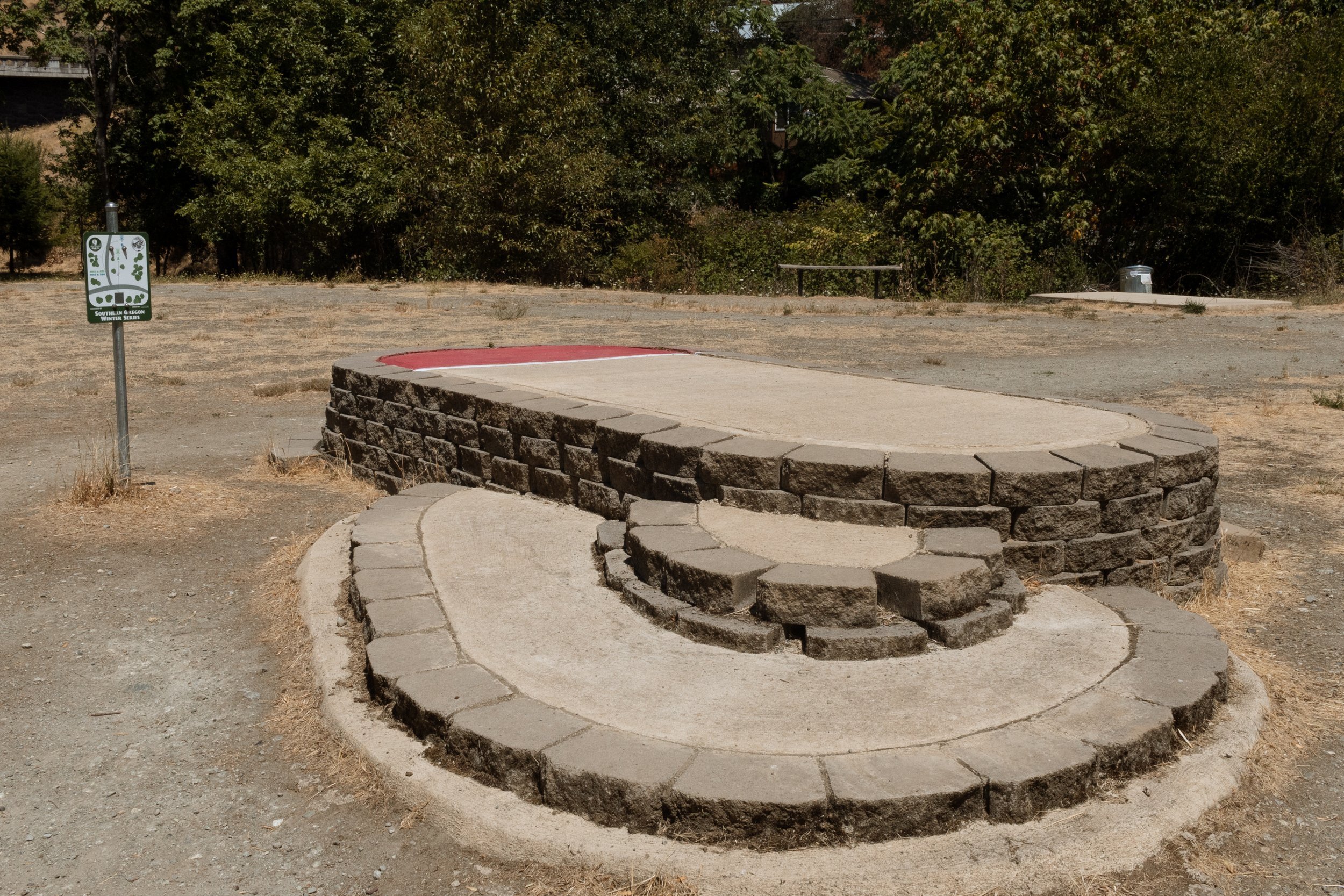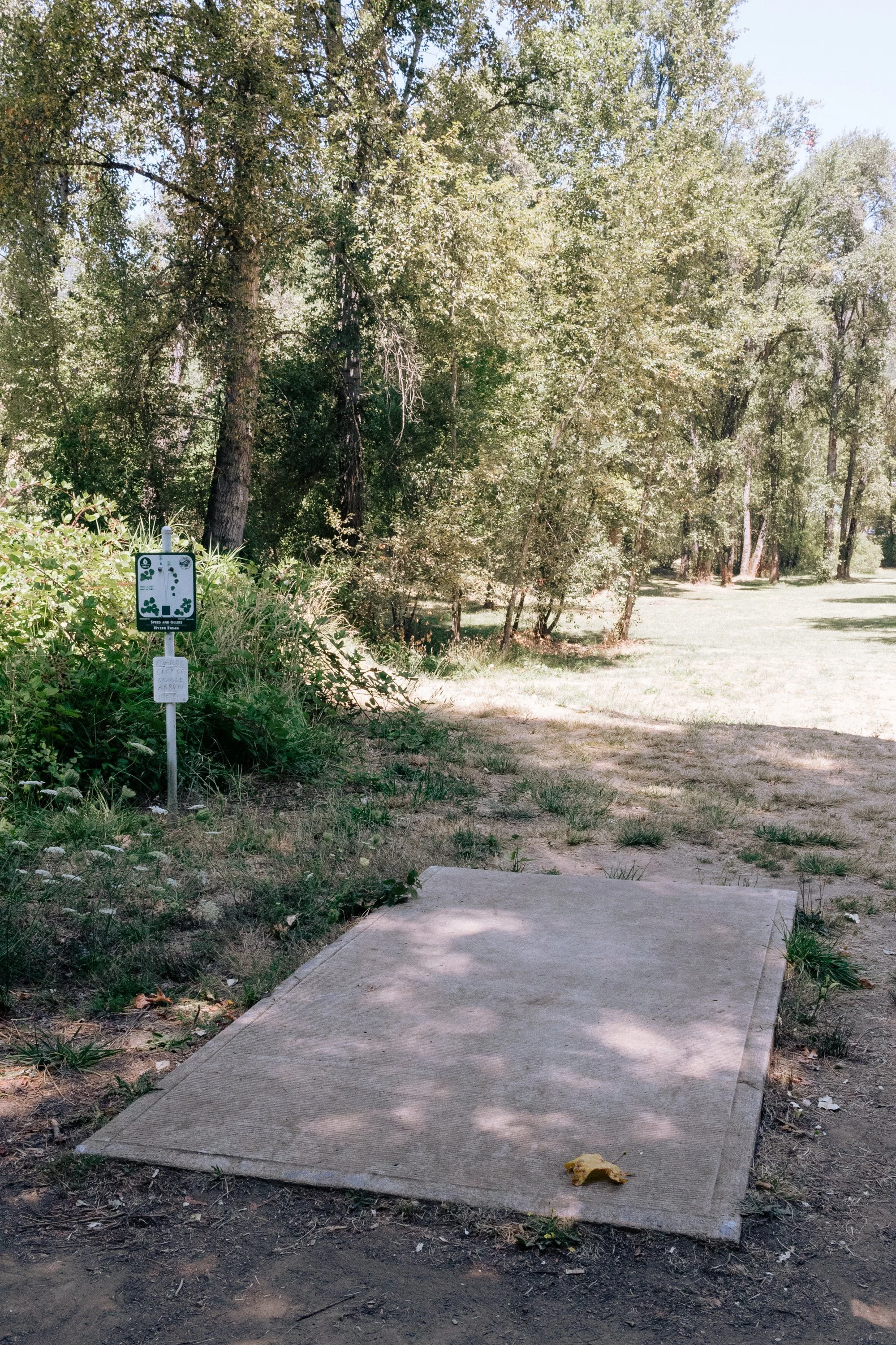 It is not far from Highway 5 and lines the South Umpqua River. The terrain is relatively flat and moderately wooded, but technical. It is cart friendly and their is an RV Park located just on the other side of the railroad tracks from the course. There are multiple basket locations on each hole, dogs are welcome and the park is dedicated to disc golf.